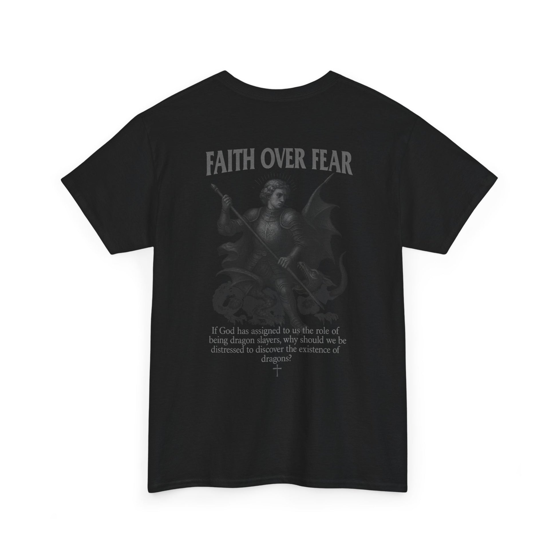 A fierce and bold T-Shirt featuring the design 'Born to slay dragons, George the dragon slayer'. Perfect for dragon enthusiasts and those who enjoy Christian figures of strength. This T-Shirt exudes a strong and adventurous vibe, suitable for casual wear or as a statement of faith piece.